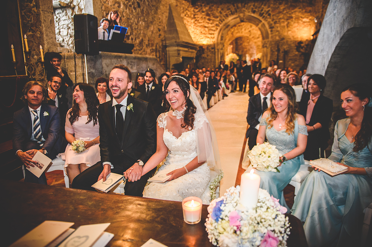 Un matrimonio da Favola: dalla Cerimonia svoltasi presso il Salone del Castello e tenuta dal Fratello della nostra Sposa, sino al ricevimento in una delle tante Terrazze Panoramiche del Castello..