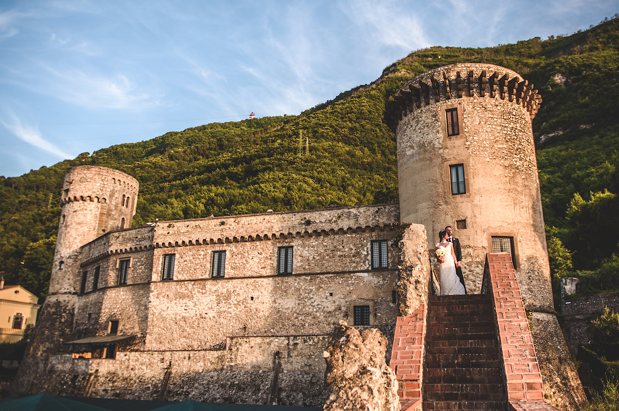 Dopo anni di convivenza lontani dalla loro terra, i nostri Sposi, hanno organizzato Cerimonia e Ricevimento all'interno dello stesso luogo, il castello medioevale di castellammare..