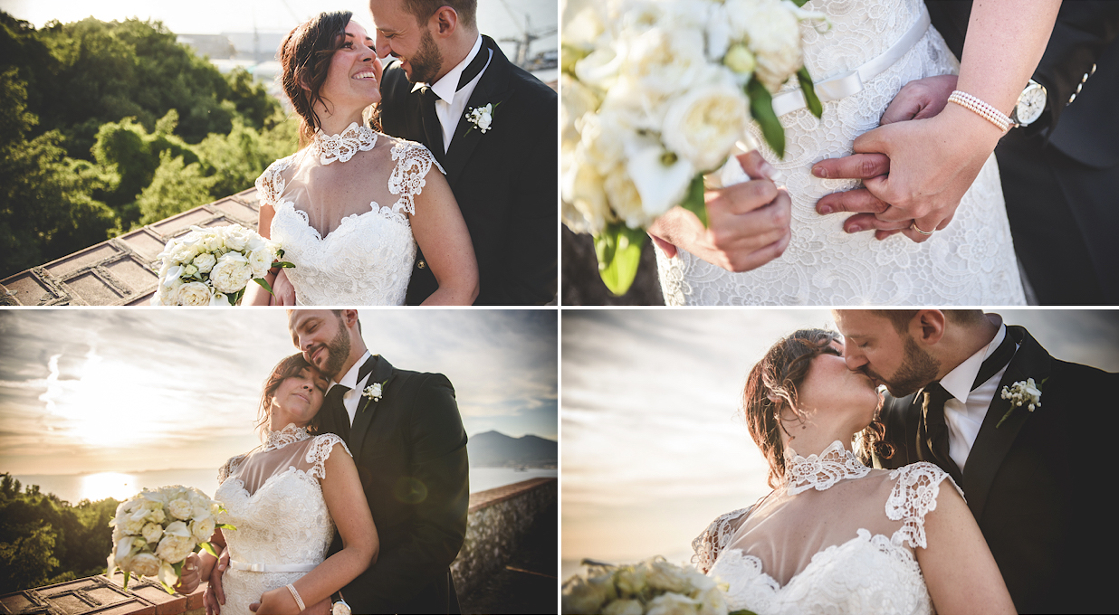Ogni angolo si prestava a scattare delle fantastiche fotografie, ho quindi preferito per un istante concentrarmi su loro in quanto coppia molto piu che sul Castello e sulla veduta del Golfo, ciò che ne è uscito sono delle immagini stupende, dove ogni elemento andava ad incastonarsi meravigliosamente l'uno nell'altro, ogni cosa al posto giusto: la luce, gli sfondi, e i loro sguardi, è impossibile non innamorarsi di Piero e Stefania in quanto coppia..